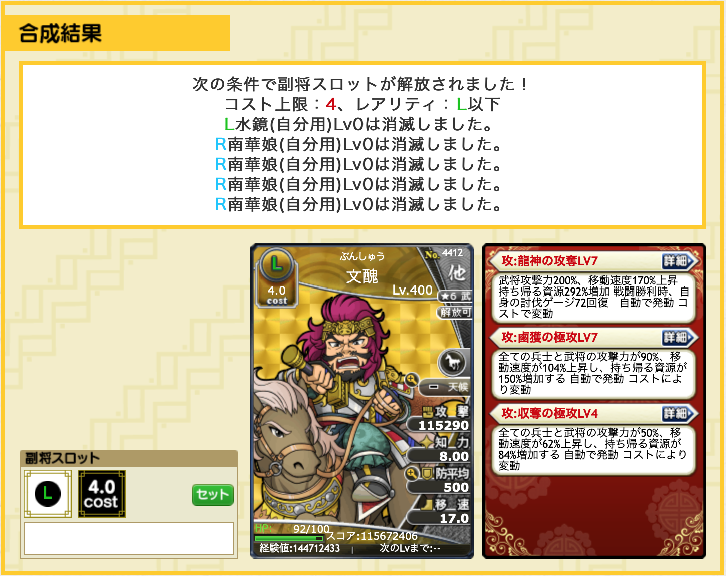 副将解放はちゃんと100%にした方がいいです