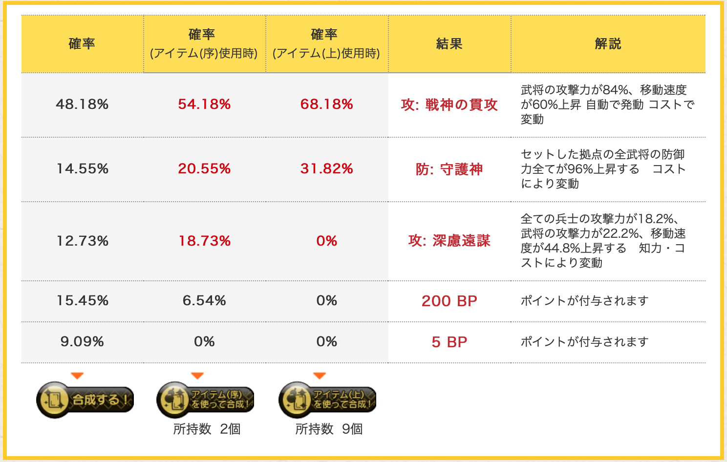 あと、龍神攻と獣神攻って上がる%おんなじだったんですね、、、知らなかったです、、汗