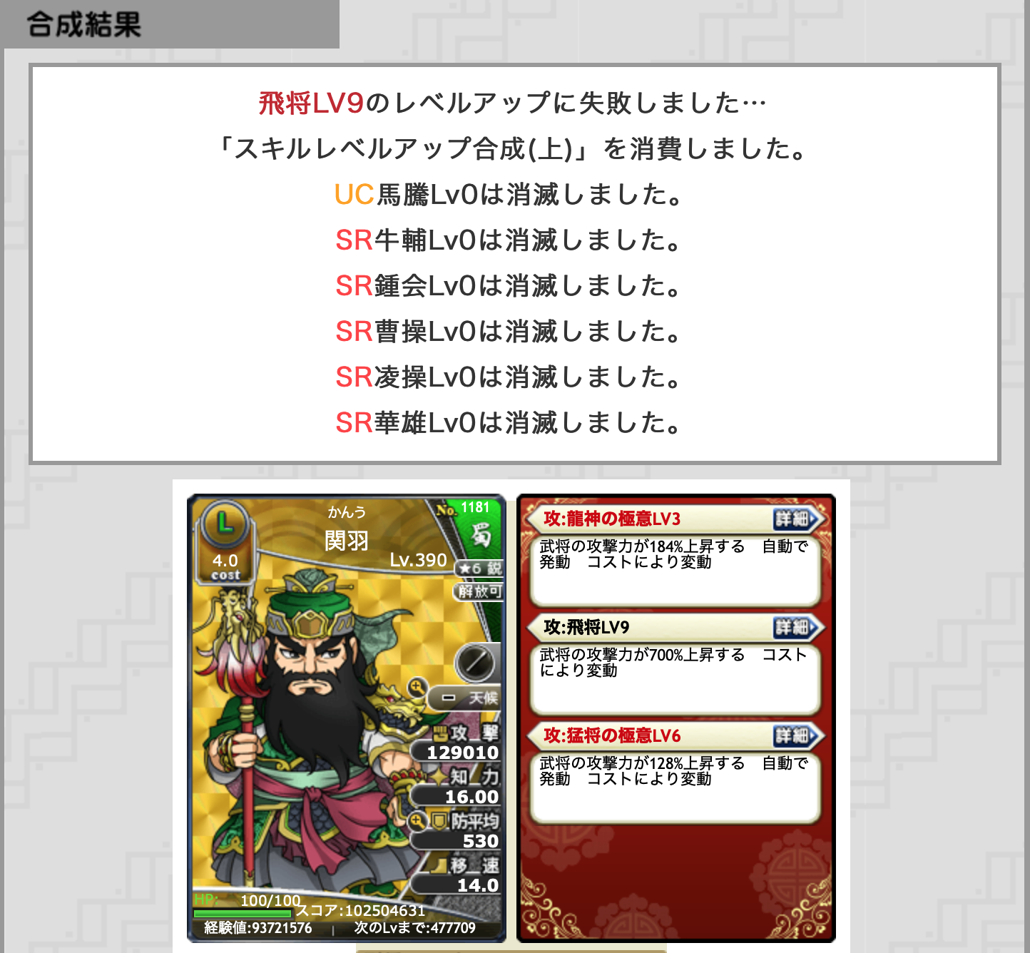 うーん(*´ω`*)まぁ仕方ないね ありがとUC馬騰 次ー